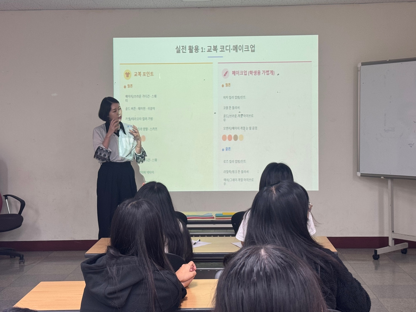 전문 강사의 안내로 피부 톤과 어울리는 컬러를 분석하고,