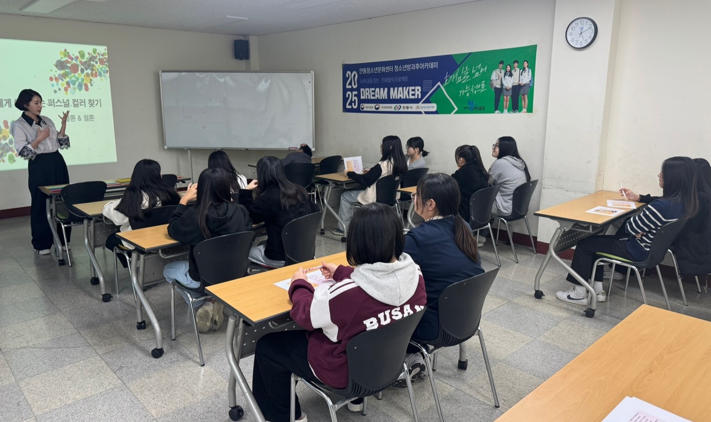 안동청소년문화센터 청소년방과후아카데미에서는 「우리의 꿈을 찾는 시간! 드림메이커」 프로그램의 일환으로